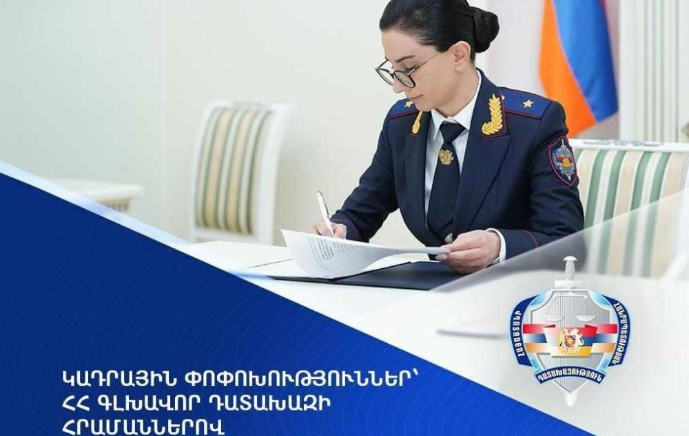 Հայաստանի Հանրապետության գլխավոր դատախազ Աննա Վարդապետյանի՝ 2023 թվականի սեպտեմբերի 15-ի հրամաններով՝ Դատախազությունում տեղի են ունեցել կադրային նշանակումներ և փոփոխություններ. տեղեկացնում են ՀՀ գլխավոր դատախազությունից։