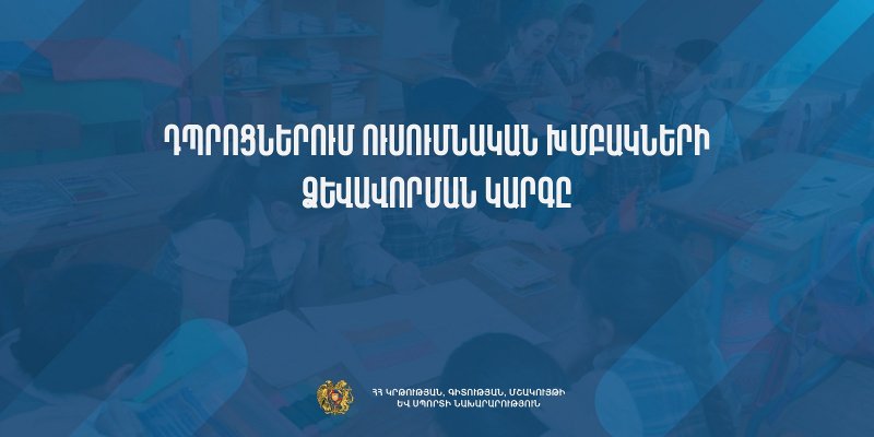 Ուսումնական խմբակների ձևավորումըՈւսումնական խմբակների անհրաժեշտությունը որոշվում է սովորողների առաջարկությամբ, հանրակրթության պետական չափորոշչով սահմանված առաջնահերթություններով, դպրոցի զարգացման նպատակներով։ Խմբակը կարող է վարել ուսուցիչը կամ համապատասխան որակավորում ունեցող մասնագետը: