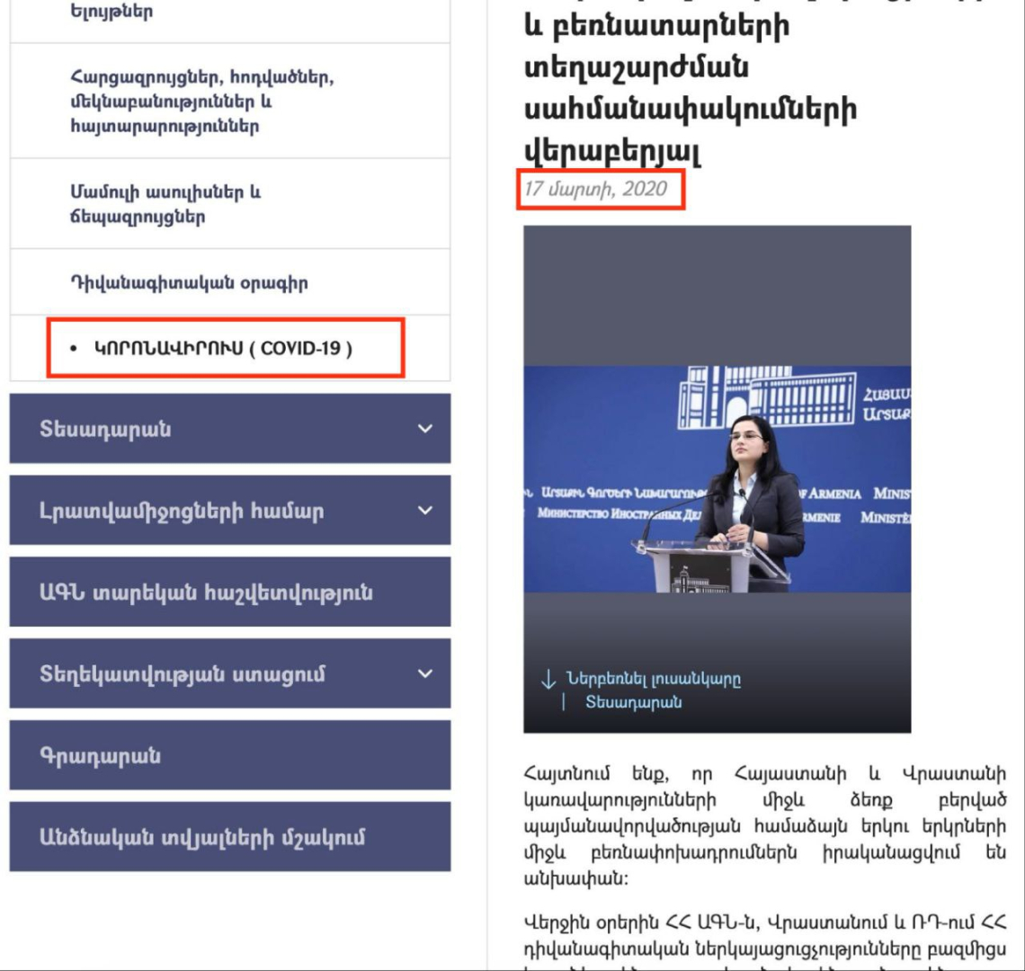 «2020 թվականի մարտի 17-ի նորությունը, առանց լրացուցիչ պարզագույն ճշտման, որպես 2025 թվականի հոկտեմբերի 4-ի նորություն ներկայացնող «լրագրողին» խորհուրդ ենք տալիս առնվազն ծանոթանալ դրա բովանդակությանը։ Ուշագրավ է, որ 2020 թվականի նորության մեջ խոսվում է այդ պահին ապագայում՝ 2020 թ. մարտի 18-ին, ուժի մեջ մտնելիք որոշման, կորոնավիրուսի շրջանի սահմանափակումների և առատ ձյան մասին. ակնհայտ փաստեր, որոնք նվազագույն ուշադրության պարագայում չեն համապատասխանում 2025 թ. հոկտեմբերի 4-ի իրականությանը։