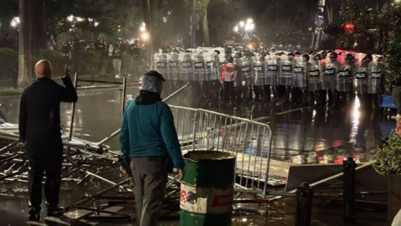 Այնուհետև ոստիկանությունը ջրցան մեքենաներ և այլ միջոցներ է կիրառել Վրաստանի նախագահի վարչակազմի շենք ներխուժելու փորձ կատարած ցուցարարների դեմ։