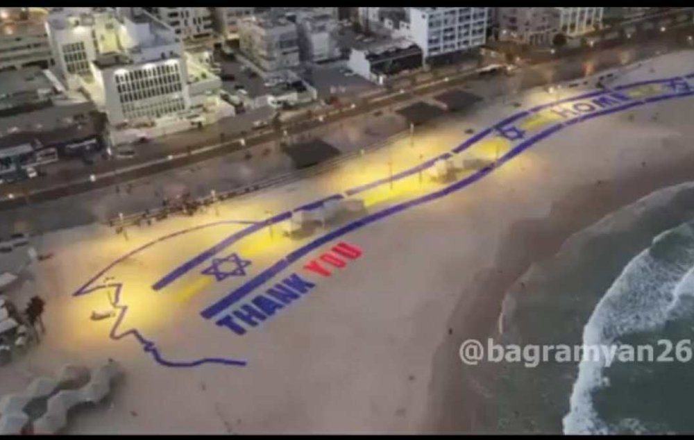 Դոնալդ Թրամփին ուղղված մեծ «շնորհակալություն» են նկարել Իսրայելի Թել Ավիվի լողափերից մեկում, որպեսզի նա կարողանա տեսնել այն Բեն Գուրիոն օդանավակայանին մոտենալիս։