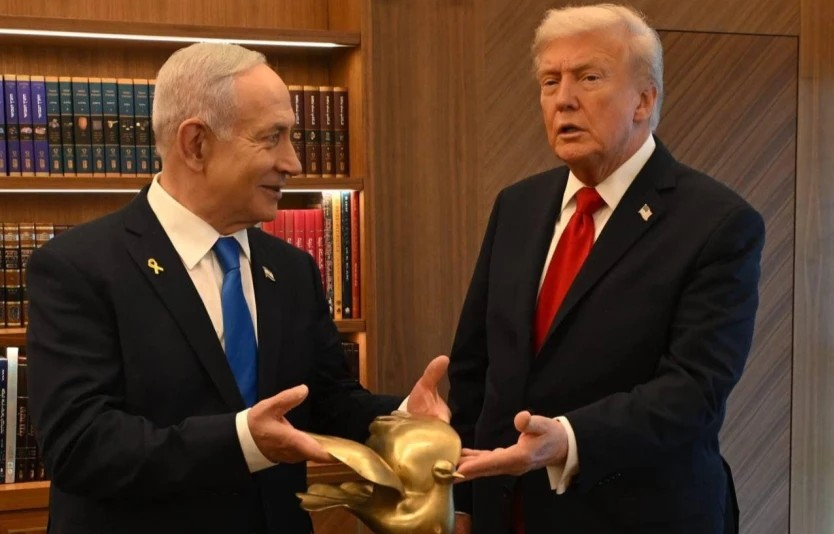 Իսրայելի վարչապետ Բենիամին Նեթանյահուն ԱՄՆ նախագահ Դոնալդ Թրամփին նվիրել է ոսկե աղավնի, հաղորդում են իսրայելական Telegram ալիքները։