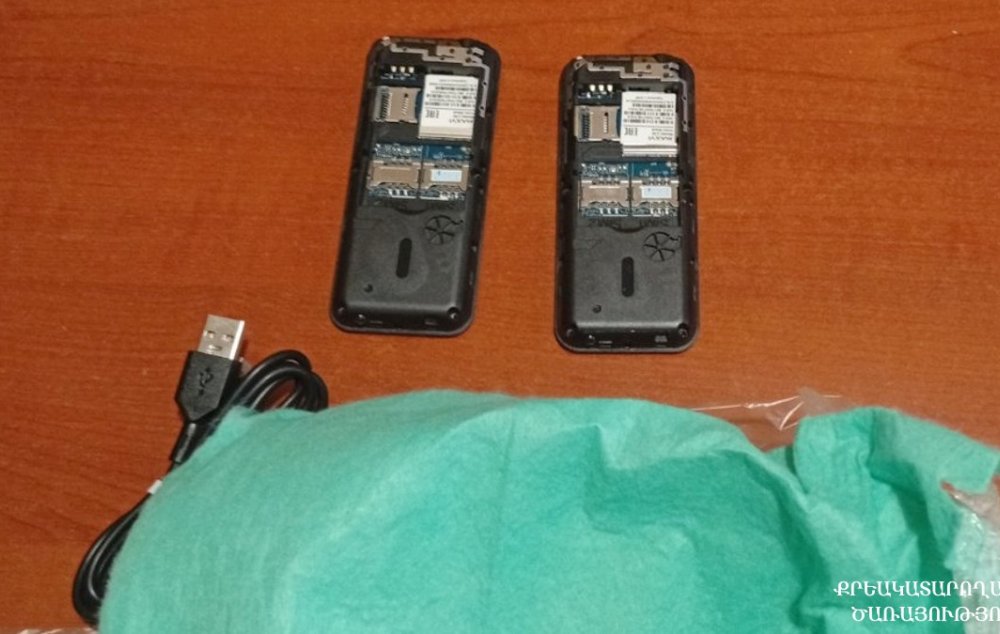 ՀՀ արդարադատության նախարարության «Վանաձոր» քրեակատարողական հիմնարկի պահպանության ապահովման բաժնի ծառայողները, ծառայություն իրականացնելիս, նկատել են հիմնարկի տարածք ներնետված փաթեթ։ Զննությամբ փաթեթում հայտնաբերվել են 2 բջջային հեռախոս և USB լար։