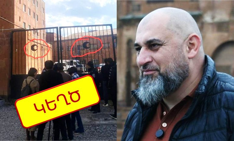 Գյումրեցի ընդդիմադիր ակտիվիստ Կարապետ Պողոսյանը «Ֆեյսբուք»-ի իր էջում լուսանկար է հրապարակել Քննչական կոմիտեի Գյումրու քննչական վարչության դարպասներից և դրա վրա առկա պատկերը որպես կիսալուսին ներկայացրել: