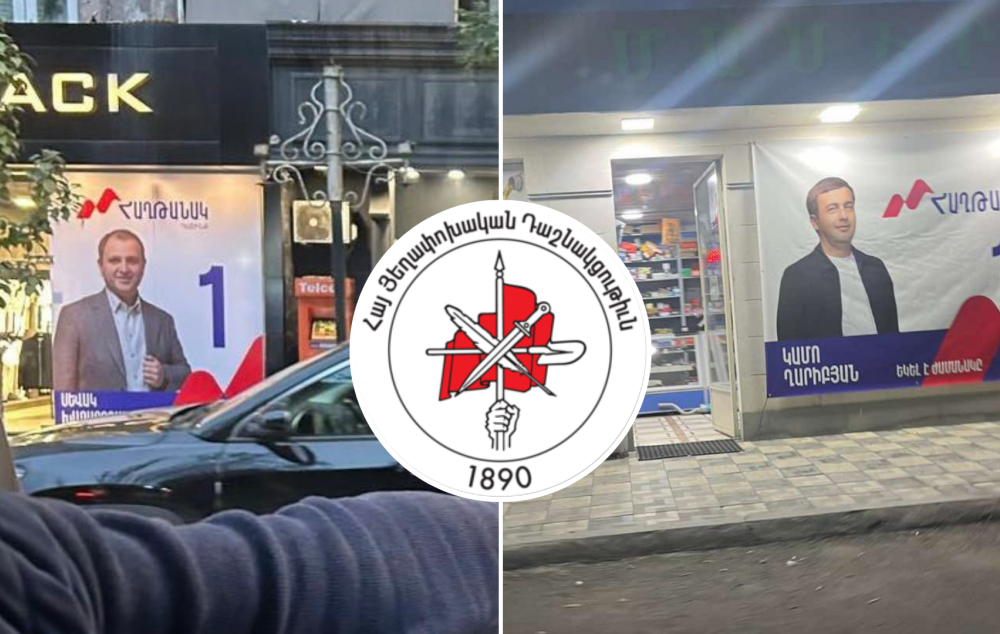 Դաշնակների թեկնածու՝ «Հաղթանակ» դաշինքի թեկնածուները՝ Սաքուլիկի գլխավորությամբ իրենց նախընտրական պաստառները փակցնում են օրենքի խախտմամբ՝ առևտրային կազմակերպությունների վրա։