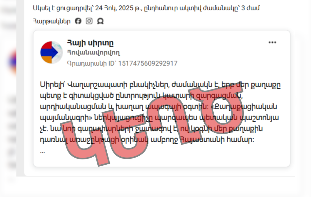 լայնածավալ արշավ, որը նպատակ ունի ապակողմնորոշել Վաղարշապատի ընտրողներին։