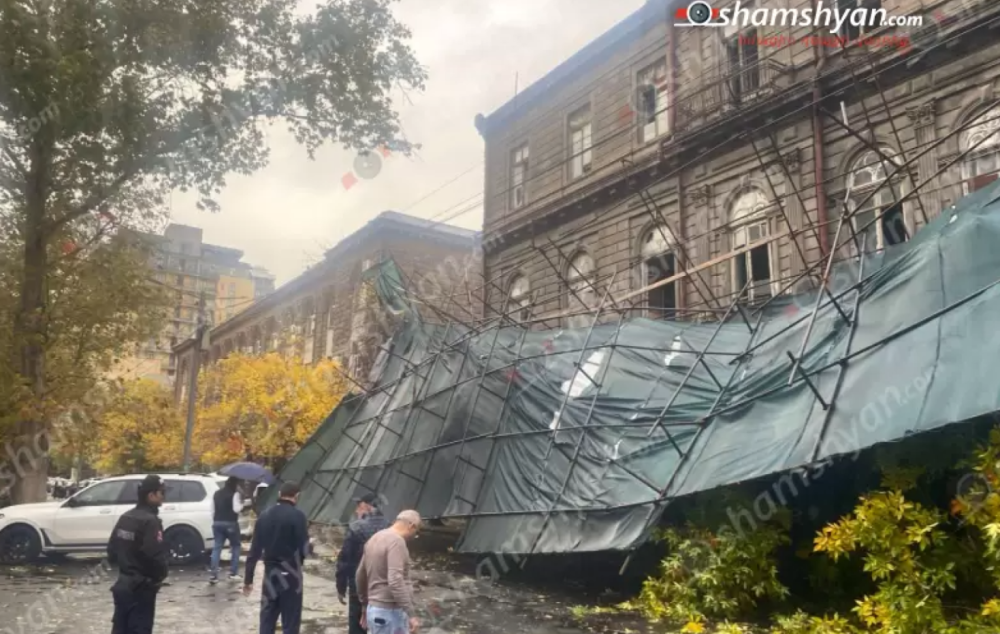 Այսօր՝ հոկտեմբերի 26-ին, արտակարգ դեպք է տեղի ունեցել Երևանում: Ժամը 16:40-ի սահմաններում քամու հետևանքով Արամի 54 շենքին շինարարական երկաթյա ձողերով հավաքված ցանցը պոկվել ու ընկել է, հայտնում է Shamshyan.com-ը։