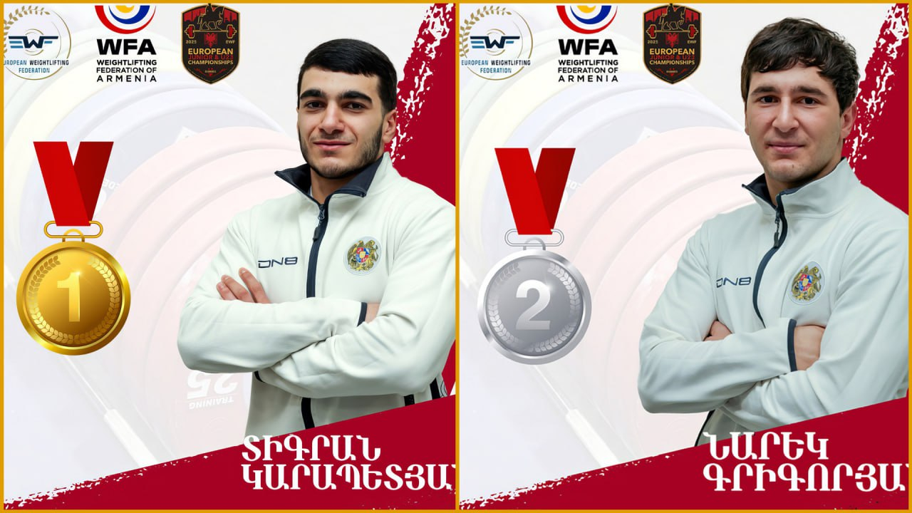 Ալբանիայի Դուրես քաղաքում շարունակվող մինչև 23 տարեկան ծանրորդների Եվրոպայի առաջնությունում Տիգրան Կարապետյանը դարձավ ոսկե, իսկ Նարեկ Գրիգորյանը` արծաթե մեդալակիր։
