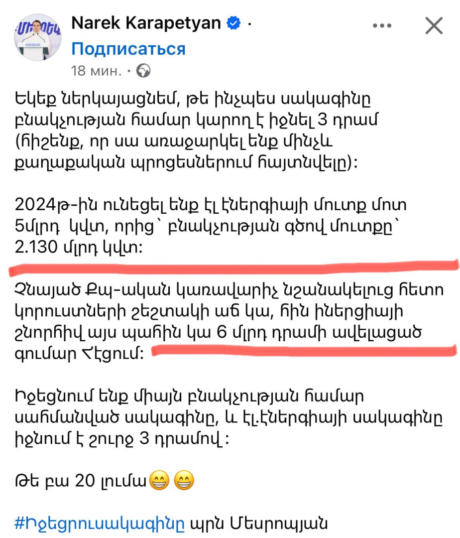 ոլորտում՝ մեր հազարավոր բարեխիղճ սպառողների եւ ինքնավար էլեկտրաարտադրողների