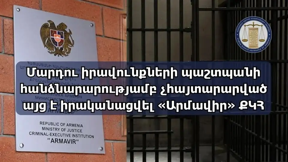 Մարդու իրավունքների պաշտպանի աշխատակազմի խոշտանգումների և վատ վերաբերմունքի կանխարգելման վարչության (կանխարգելման ազգային մեխանիզմ) ներկայացուցիչները՝ Պաշտպանի հանձնարարությամբ, 2025 թվականի սեպտեմբեր և հոկտեմբեր ամիսներին երկօրյա չհայտարարված մշտադիտարկման այց են իրականացրել Արդարադատության նախարարության «Արմավիր» քրեակատարողական հիմնարկ: