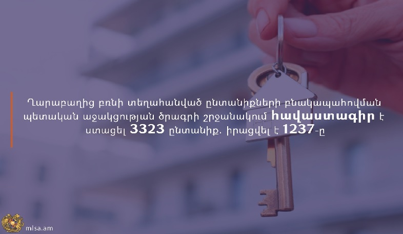 Ղարաբաղից բռնի տեղահանված ընտանիքների բնակարանային ապահովման պետական աջակցության ծրագրի շրջանակում առցանց դիմումների ընդունման գործընթացը շարունակվում է: Այս մասին տեղեկացնում են աշխատանքի և սոցիալական հարցերի նախարարությունից։