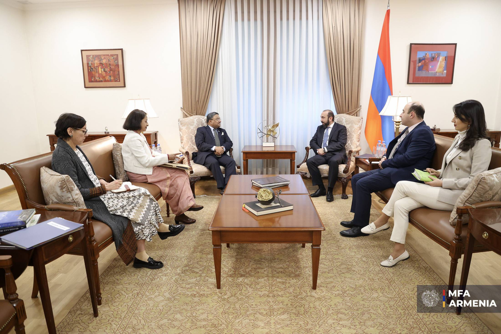 Նոյեմբերի 7-ին ՀՀ ԱԳ նախարար Արարատ Միրզոյանն ընդունել է Հնդկաստանի ԱԳ նախարարի տեղակալ, Արևմտյան ուղղության հարցերով քարտուղար Սիբի Ջորջին, ով Երևան է ժամանել երկկողմ քաղաքական խորհրդակցությունների շրջանակներում: