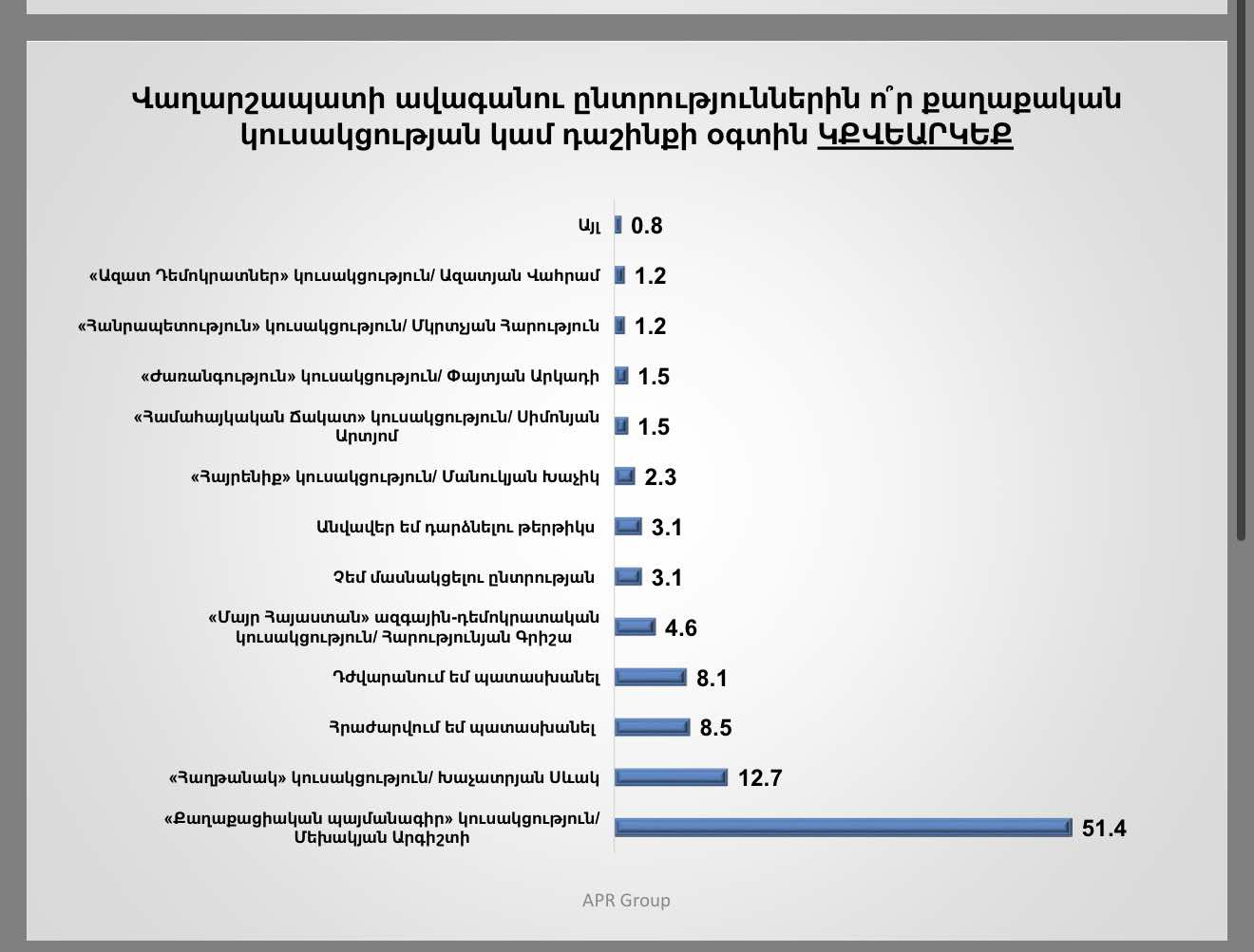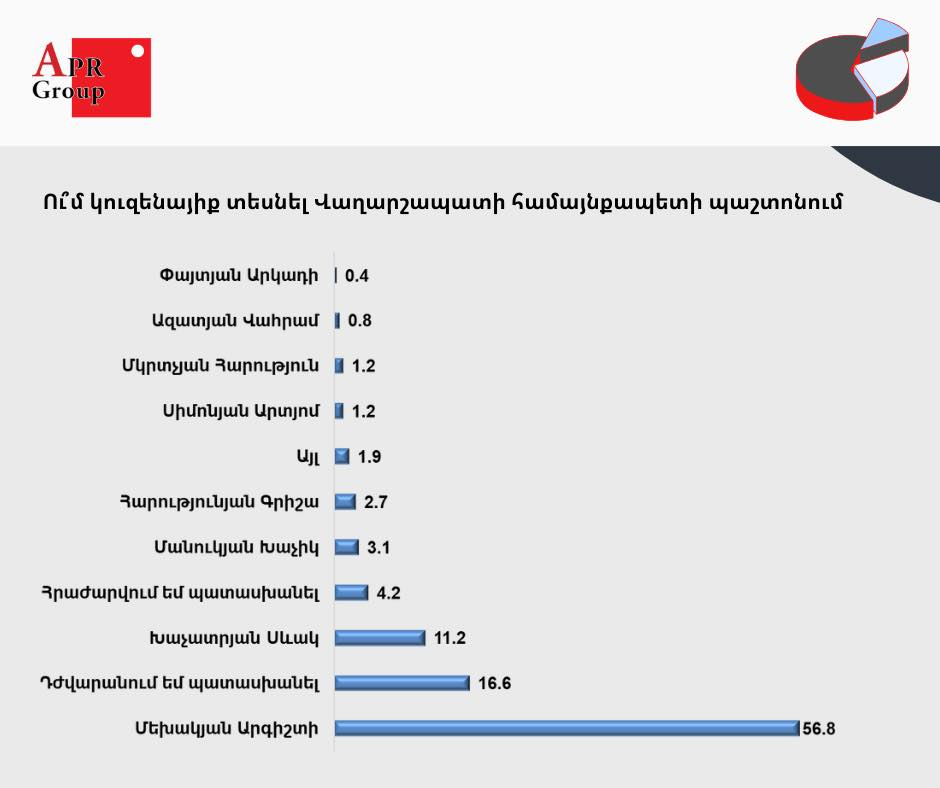 Հարցին՝ «Ում կուզենայիք տեսնել Վաղարշապատի համայնքապետի պաշտոնում», հարցվածների