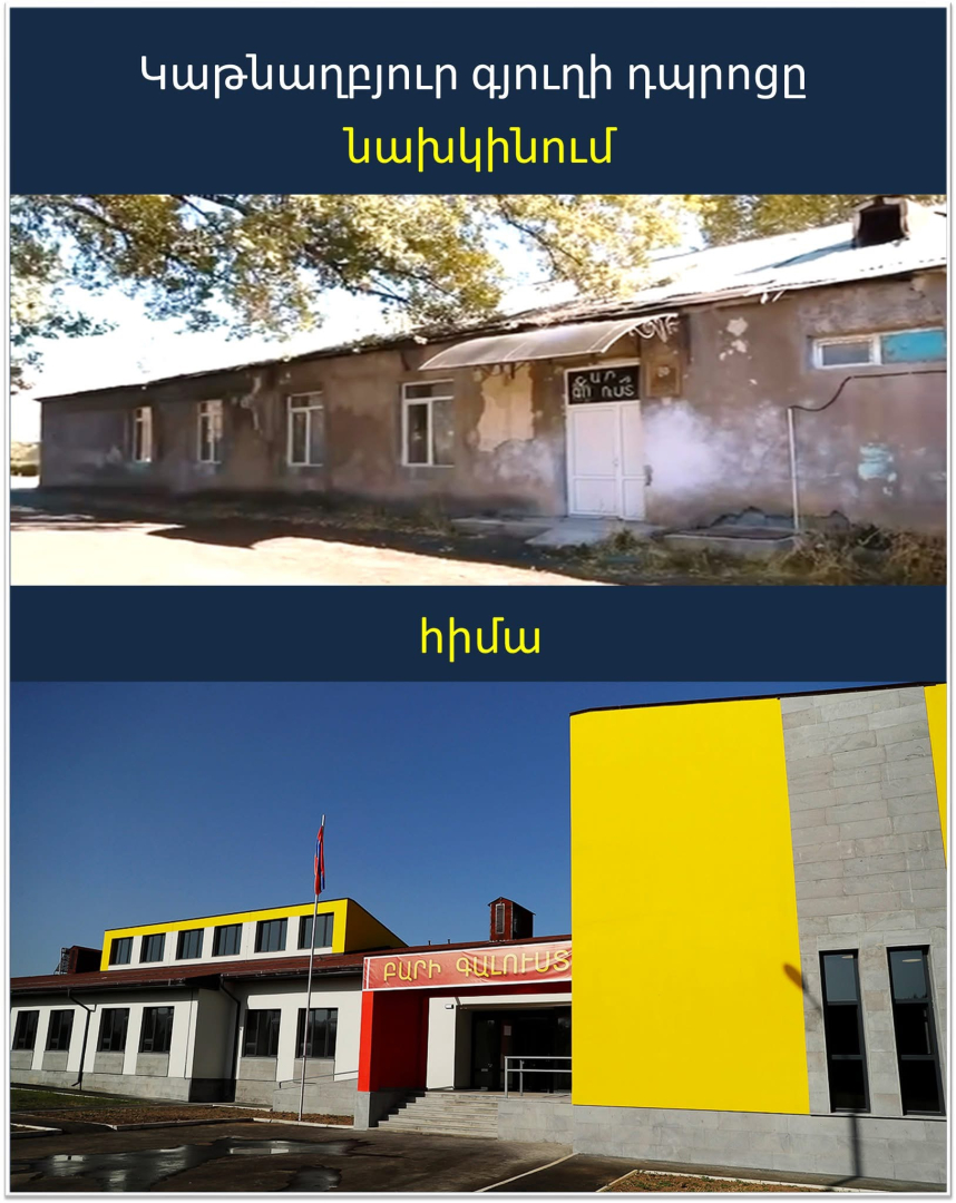 ՀՀ վարչապետի աշխատակազմի ղեկավարի տեղակալ Տարոն Չախոյանը սոցցանցի իր էջում հրապարակել է Կաթնաղբյուրի դպրոցի նախկին և ներկա լուսանկարներն ու գրել.