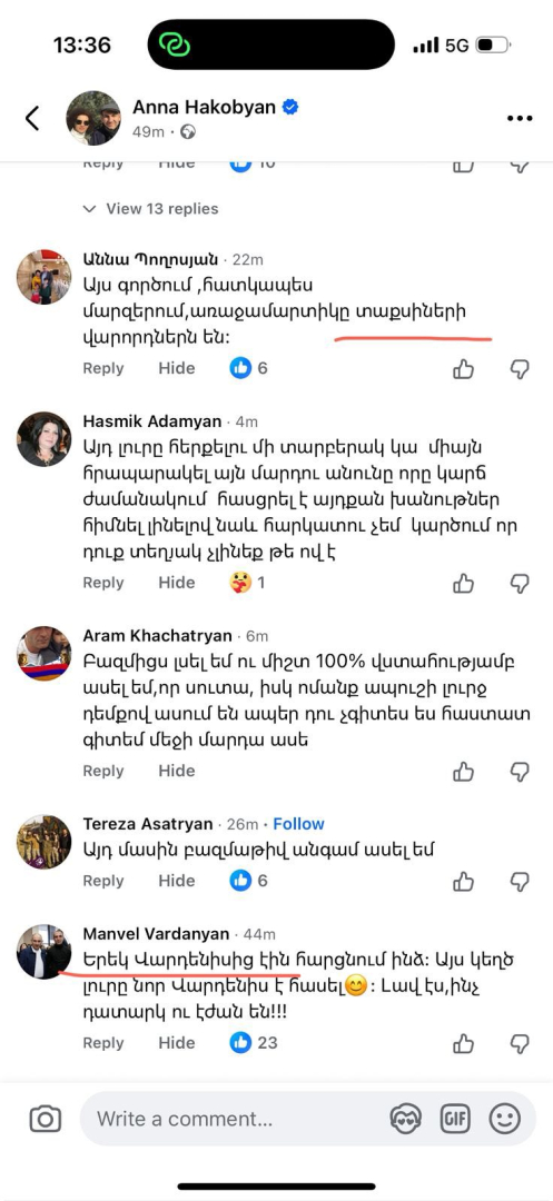 Մտադիր եմ հետևողականորեն հետամուտ լինել իմ անվան այսպիսի շահարկման բոլոր դեպքերին, իմ անունից անընդունելի և առերևույթ հանցավոր գործողություններ կատարող անձանց բացահայտմանը և նրանց օրենքով սահմանված կարգով պատասխանատվության ենթարկելու գործին»,- սոցցանցի իր էջում գրել է Աննա Հակոբյանը։