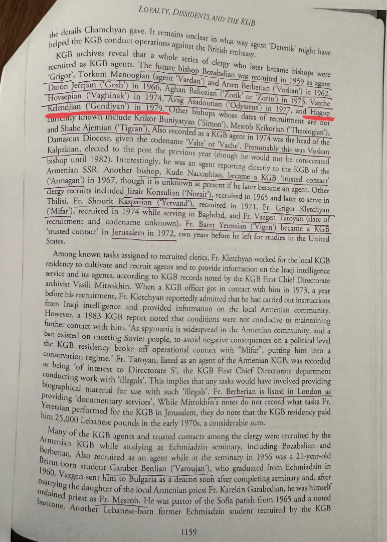 Կտրիճին և Եզրասին հավատարմություն հայտնած եպիսկոպոսներ, Սուրբ Էջմիածինը օտարերկրյա հատուկ ծառայության գործակալից ազատագրելու, ինչպես նաև Հայաստանի պետական անվտանգությունը ապահովելու գործում ձեր կարծիքը երբեք վճռորոշ չի կարող լինել: Ուղղակի դուք պետք է որոշեք, մնում եք ԿԳԲ-ի մութ անցյալի ճիրաններում, թե մասնակից եք լինում Սուրբ Հոգու շնորհներով պայծառացող Սուրբ Էջմիածնի գալիքին ու Անկախ Հայաստանի հզորացման գործին: