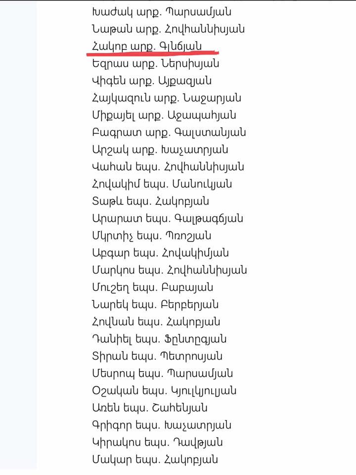ԿԳԲ-ի գործակալ, պետականադավ, աստվածուրաց Կտրիճ Ներսիսյանին անվերապահ աջակցություն հայտնած եպիսկոպոսների ցանկում աչքովս ընկավ Հակոբ արք. Գլնճյանի անունը: Ուրուգվայի արևի տակ խիստ բարեպաշտի ու աստվածավախի համբավ ունեցող այս սրբազանը, ըստ Մոսկվայի և Պետերբուրգի ԿԳԲ-ի արխիվների գաղտնազերծված փաստաթղթերի, Խորհրդային հատուկ ծառայությունների կողմից հավաքագրվել է դեռևս 1979 թ.-ին ու ստացել ԳԵՆԴՋՅԱՆ ծածկանուն: