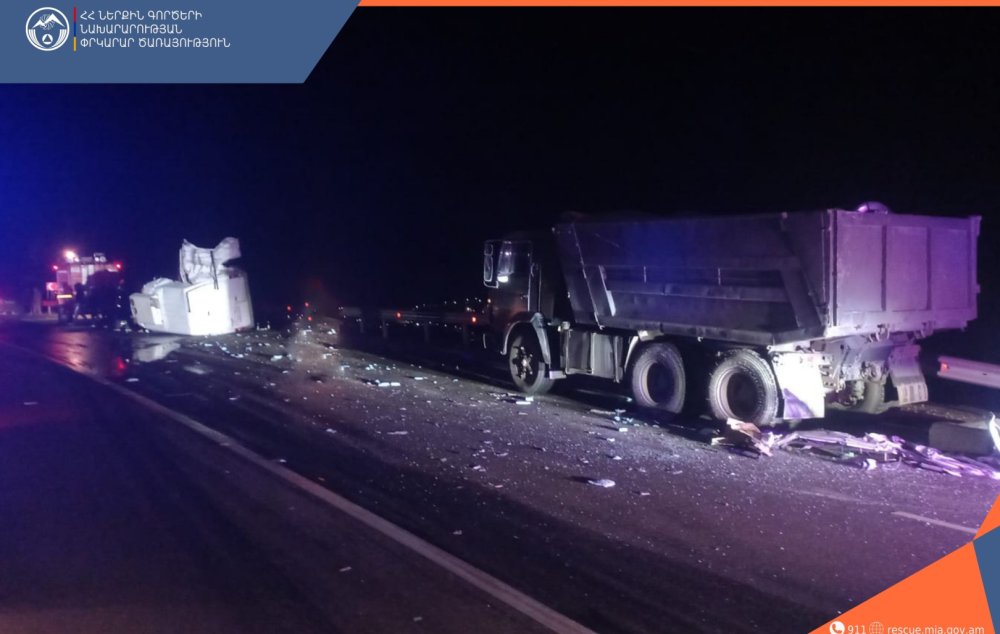Պարզվել է, որ Երևան-Մեղրի ավտոճանապարհի 98-րդ կմ-ին «Ford» մակնիշի ավտոմեքենան բախվել է կայանած «KamAZ» մակնիշի բեռնատարին և կողաշրջվել, հայտնում են փրկարար ծառայությունից։