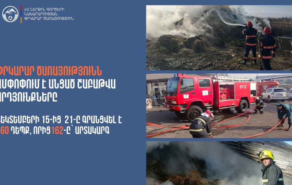 Դեկտեմբերի 15-21-ը ՆԳՆ ՓԾ ճգնաժամային կառավարման ազգային կենտրոնում գրանցվել է 460 դեպք, որից 162-ը՝ արտակարգ: