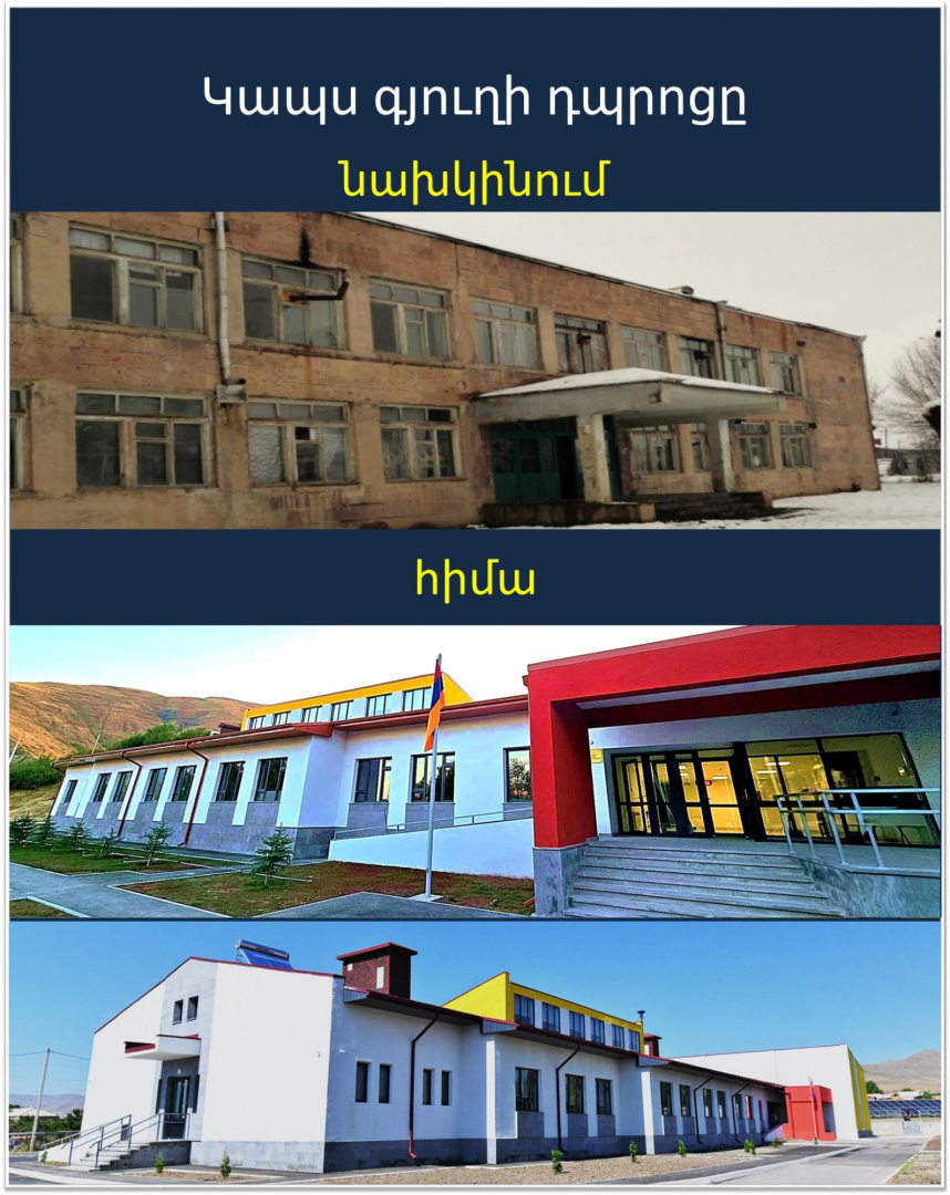 ՀՀ վարչապետի աշխատակազմի ղեկավարի տեղակալ Տարոն Չախոյանը «Ֆեյսբուք»-ի իր էջում լուսանկարներ է հրապարակել Կապսի դպրոցի նախկին ու ներկա տեսքից՝ գրելով.