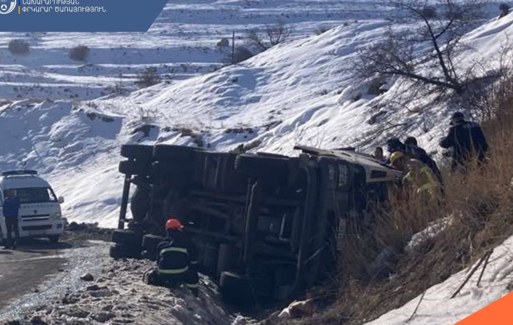 Հունվարի 12-ին՝ ժամը 12։16-ին, Վայոց ձորի մարզային փրկարարական վարչության ճգնաժամային կառավարման կենտրոն ահազանգ է ստացվել, որ Ելփին-Զանգակատուն ավտոճանապարհին տեղի է ունեցել ՃՏՊ՝ բեռնատար ավտոմեքենան կողաշրջվել է․ վարորդն արգելափակվել է խցիկում: