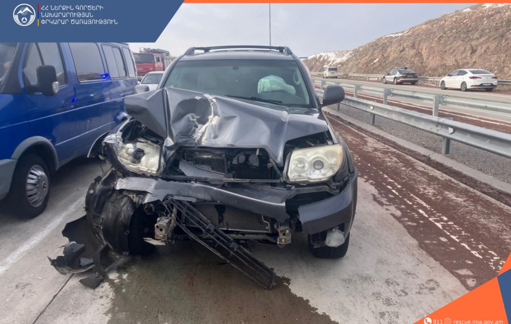 Պարզվել է, որ Երևան-Գյումրի ավտոճանապարհի 65-րդ կմ-ին բախվել են «Toyota» և «Opel» մակնիշների ավտոմեքենաները: «Opel» մակնիշի ավտոմեքենան դուրս է եկել ճանապարհի երթևեկելի հատվածից և շրջվել։