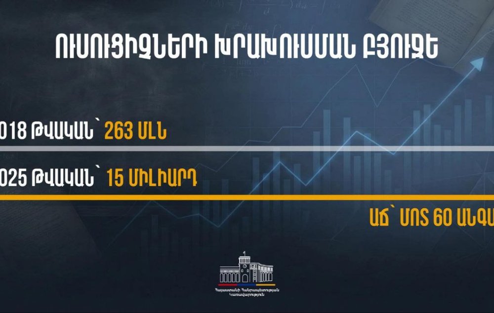 Ուսուցիչների խրախուսման և լրավճարների համար նախատեսված բյուջետային միջոցներն աճել են 60 անգամ՝ համեմատած նախորդ տարիների հետ։