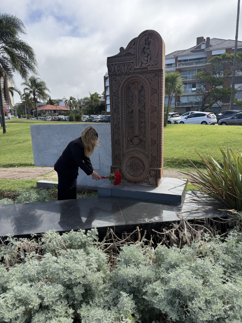 Ուրուգվայում Հայաստանի Հանրապետության դեսպան Մարիամ Գևորգյանը Հայրենիքի պաշտպանության համար զոհվածների հիշատակի օրվա կապակցությամբ ծաղիկներ է խոնարհել Հայաստանի հրապարակում կանգնեցված խաչքարի մոտ: Այս մասին հայտնում են Ուրուգվայում ՀՀ դեսպանությունից։