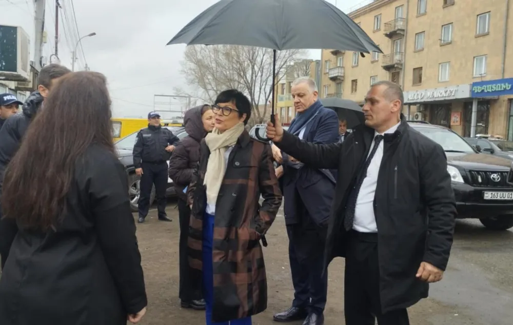Այցի հաջորդ կանգառը Գյումրու հին շուկայի տարածքն էր, որտեղ ԵՄ աջակցությամբ իրականացվում է վերականգնման խոշորածավալ ծրագիր։ 2024 թվականին մեկնարկած նախաձեռնությունն իրականացվում է «Թումո» ստեղծարար տեխնոլոգիաների կենտրոնի հետ համատեղ՝ միջազգային գործընկերների և բարերարների աջակցությամբ։