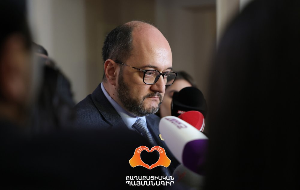 Ո՞ր օրենքն ենք խախտել էն պրոցեսում, որ հիմա տեղի է ունենում: Ընտրական օրենսգիրքը սահմանում է կանոններ ընտրություններից մեկ ամիս առաջ սկսվող պաշտոնական ընտրարշավին: Ընտրության հաջորդ օրվանից սկսած յուրաքանչյուր կուսակցություն և քաղաքական գործիչ կարող է ընտրարշավի տրամաբանության մեջ իրականացնել գործունեություն: Ես կարծում եմ, որ դուք առնվազն ազնիվ չեք էն պնդման մեջ, որ քաղաքական դաշտում էսօր կա ևս մի քաղաքական ուժ, իհարկե «խալաստոյ» փամփուշտներով կրակող, որը «Քաղաքացիական պայմանագրից» շատ ավելի շատ գործիքներ է կիրառում, նաև ռեսուրսներ՝ նաև մարդկային, նաև ֆինանսական, բայց դուք դրա մասին չեք խոսում»: