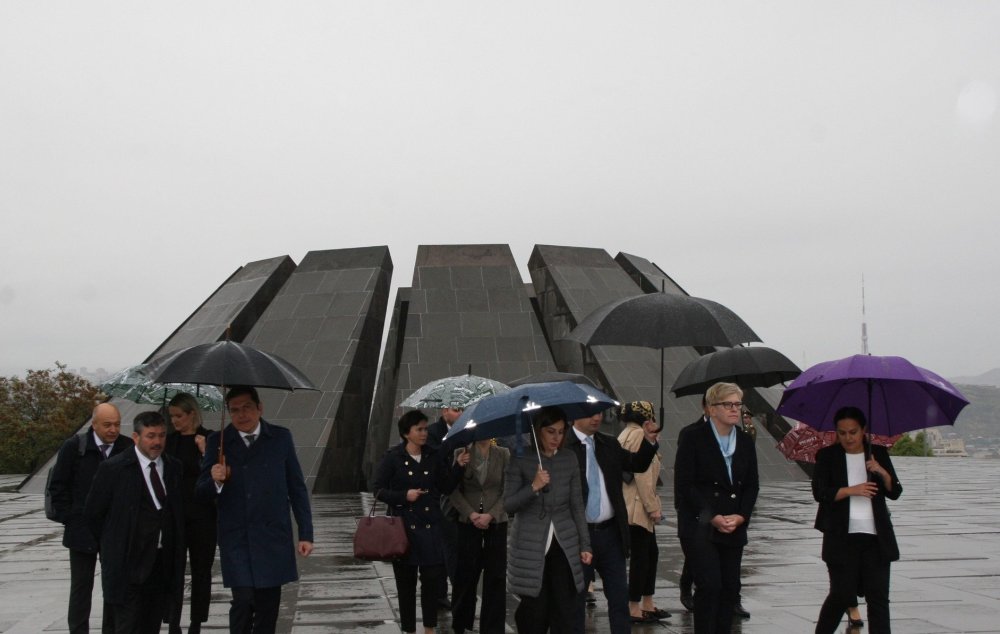 Տիկին Ինգրիդա Շիմոնիտեն ծաղկեպսակ դրեց Հայոց ցեղասպանության զոհերի հիշատակը հավերժացնող հուշակոթողին, որից հետո հյուրերը ծաղիկներ դրեցին անմար կրակի մոտ և մեկ րոպե լռությամբ հարգել Հայոց ցեղասպանության անմեղ զոհերի հիշատակը: