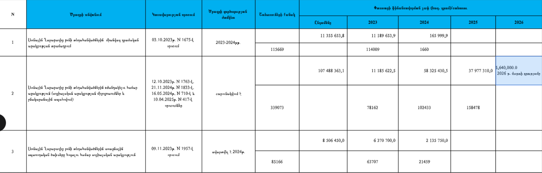 2023 թ․-ից 2026 թվականը ներառյալ, ներկայացնել պետբյուջեից