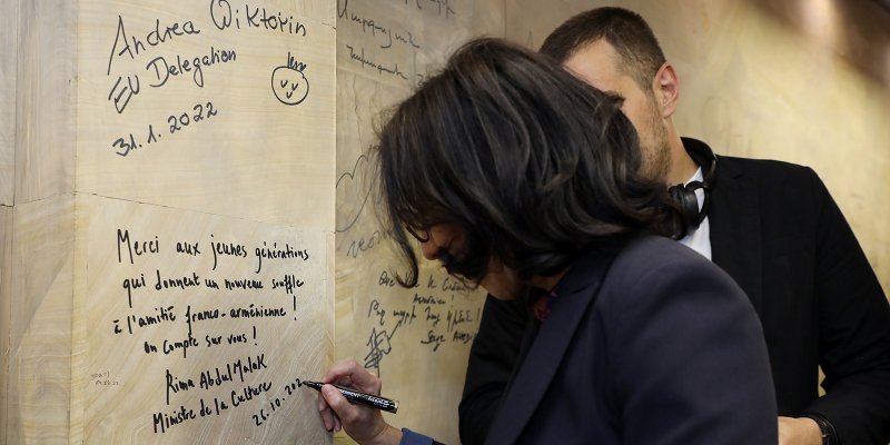 Հանդիպման ավարտին Ֆրանսիայի մշակույթի նախարարը գրառում է կատարել Կինոյի տան պատին. «Շնորհակալություն երիտասարդ սերնդին, որը նոր շունչ է հաղորդում ֆրանս-հայկական բարեկամությանը։ Մենք մեծ հույսեր ենք կապում ձեզ հետ»։