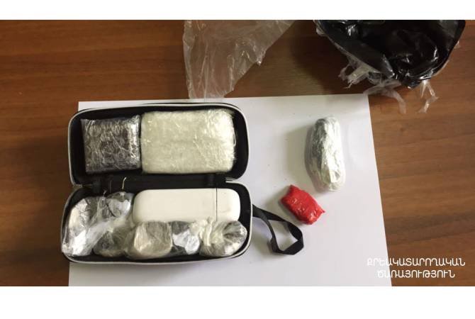 Ըստ աղբյուրի՝ փաթեթից հայտնաբերվել է սև պատյան, որին կցված է եղել կարմիր, կպչուն ժապավենով փաթեթ։ Պատյանի մեջ և կցված փաթեթում առկա են եղել առանձնացված զանգվածներ՝ ընդհանուր 65,63 գրամ քաշով, որոնցից 35,35 գրամը՝ հերոին տեսակի թմրամիջոցին նմանվող զանգված, իսկ 30,28 գրամը՝ «կրիստալ» տեսակի թմրամիջոցին նմանվող զանգված: Բացի այդ՝ պատյանում եղել են նաև 3 Wi-Fi սարք և ականջակալ: