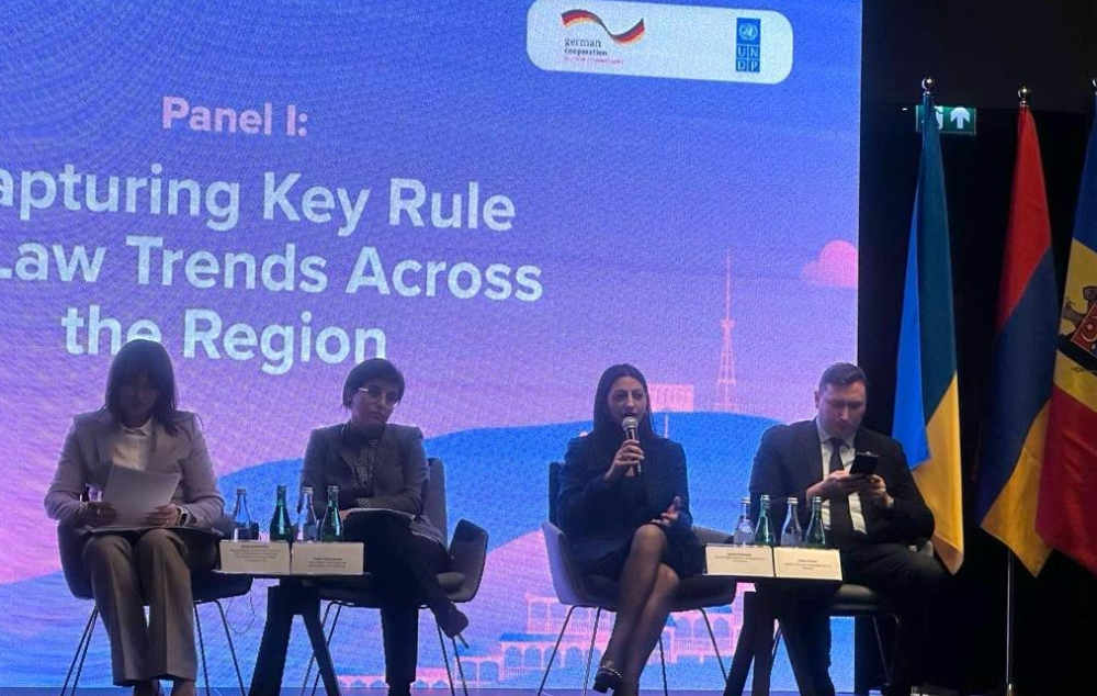Գերմանիայի կառավարության աջակցությամբ ՄԱԶԾ-ի վրաստանյան գրասենյակի կողմից կազմակերպված միջոցառման նպատակն էր գնահատել իրավունքի գերակայության տարածաշրջանային միտումներն ու մարտահրավերները Հայաստանում, Վրաստանում, Մոլդովայում և Ուկրաինայում, այդ թվում` տեղահանված անձանց իրավունքների պաշտպանության բնագավառում։