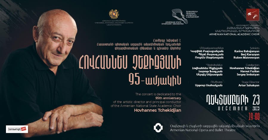 Դեկտեմբերի 23-ին ժամը 19։00 Հայաստանի Օպերայի և Բալետի ազգային թատրոնում տեղի կունենա Ազգային հերոս, Հայաստանի պետական ազգային ակադեմիական երգչախմբի գեղարվեստական ղեկավար Հովհաննես Չեքիջյանի 95-ամյակին նվիրված հոբելյանական երեկոն՝ Հայաստանի պետական ազգային ակադեմիական երգչախմբի, Հայաստանի պետական սիմֆոնիկ նվագախմբի և անվանի մենակատարների և դիրիժորների մասնակցությանբ։