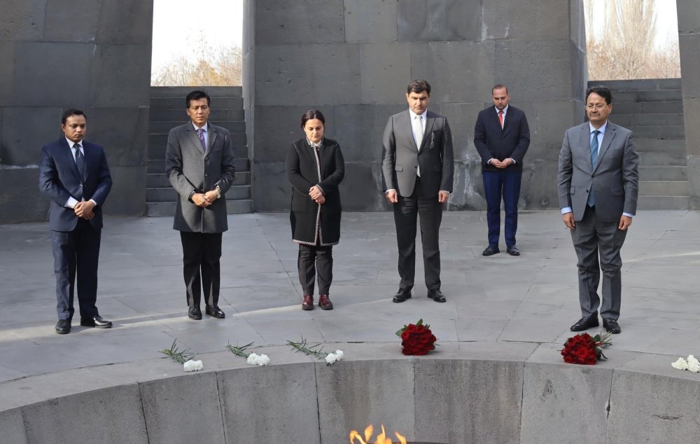 Նեպալից ժամանած հյուրերը ծաղիկներ դրեցին անմար կրակի մոտ և մեկ րոպե լռությամբ հարգեցին Հայոց ցեղասպանության անմեղ զոհերի հիշատակը:
