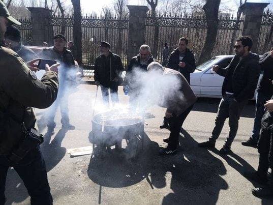 Ընդդիմադիրները Բաղրամյան փողոցում խորոված են անում