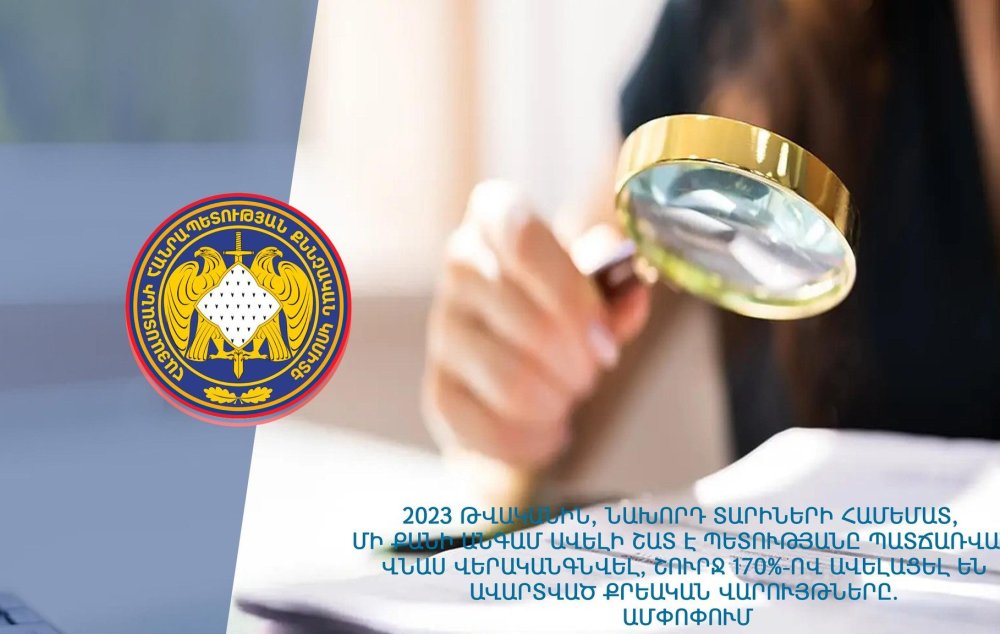 Միայն ՀՀ ՔԿ տնտեսական հանցագործությունների և մաքսանենգությունների քննության գլխավոր վարչությունում քննված վարույթներով 2023 թ. ընթացքում պետական բյուջե է վերականգնվել 27 մլրդ 785 մլն ՀՀ դրամ, որը, 2022 թ․ համեմատ (23 մլրդ 185 մլն ՀՀ դրամ), ավելի է շուրջ 20 %-ով: Ընդ որում՝ 2022 թ․ միայն մեկ վարույթով է վերականգնումը կազմել շուրջ 19 մլրդ ՀՀ դրամ: Ընդհանուր առմամբ 2023 թ․ վերականգնվել է պետությանը պատճառված այնքան վնաս, որքան վերականգնվել է 2017-2021 թթ. միասին վերցրած։