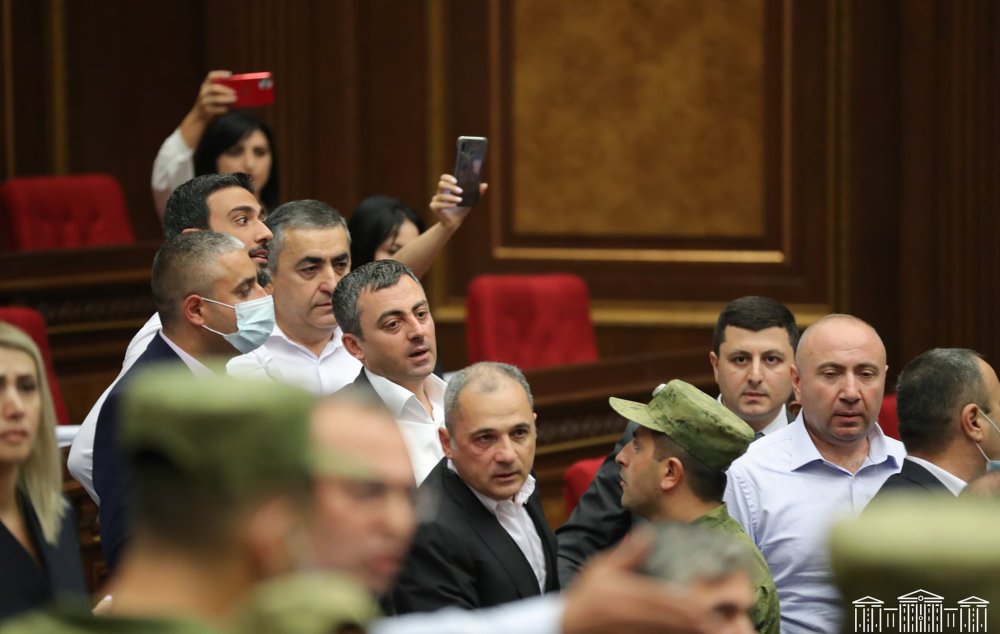 Այս խոսքից հետո ՊՆ նախկին նախարար, «Հայաստան» խմբակցության պատգամավոր Սեյրան Օհանյանը ջրի շիշը շպրտել է Հայկ Սարգսյանի ուղղությամբ՝ բղավելով. «Դավաճանը դու ես, այ տղա»։ Իրավիճակը թեժացել է, իսկ ավելի ուշ, Վահե Հակոբյանի ելույթից վրդովված, «Քաղաքացիական պայմանագիր» խմբակցության մի շարք պատգամավորներ հարվածներ են հասցրել «Հայաստան» խմբակցության պատգամավորներին։