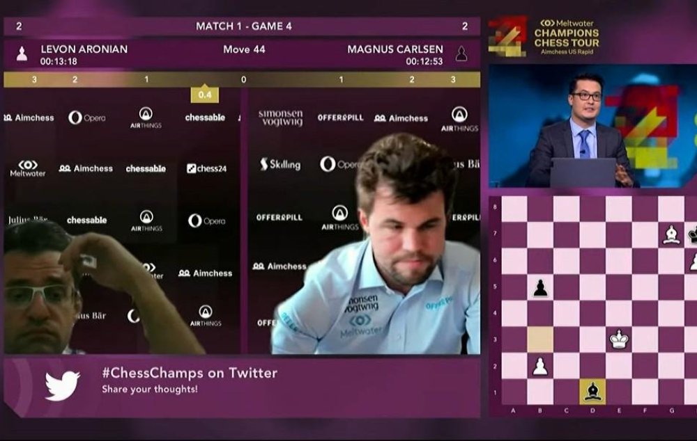 Aimchess US Rapid առցանց անցկացվող արագ շախմատի մրցաշարում Հայաստանի շախմատիստ Լևոն Արոնյանն այսօր անցկացրեց կիսաեզրափակիչ առաջին հանդիպումը Մագնուս Կառլսենի հետ:
