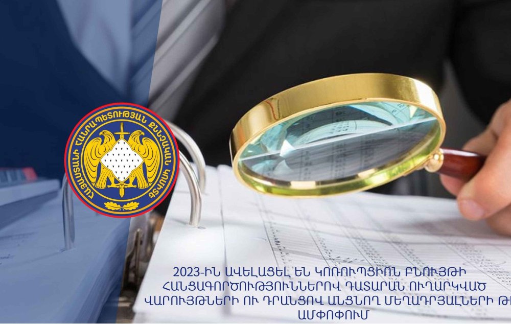 Մինչդատական վարույթի ընթացքում 2023թ․ ավարտված միայն կոռուպցիոն բնույթի քրեական վարույթներով պատճառված գույքային ընդհանուր վնասը կազմել է ավելի քան 8 մլրդ 720 մլն ՀՀ դրամ, որից 4 մլրդ 320 մլն-ը՝ պետությանը և համայնքներին պատճառված վնասն է, մնացածը՝ իրավաբանական և ֆիզիկական անձանց։