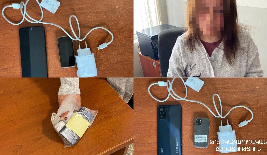 Արդյունքում՝ վերջինիս ներքնազգեստից հայտնաբերվել են 2 բջջային հեռախոս, լիցքավորիչ և լիցքավորման լար։