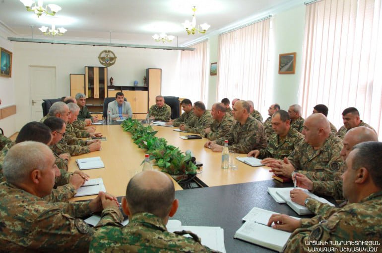 Հանդիպմանը, որին ներկա էր նաև ԱՀ անվտանգության խորհրդի քարտուղար Վիտալի Բալասանյանը, քննարկվել են բանակաշինության հետ կապված հարցեր: