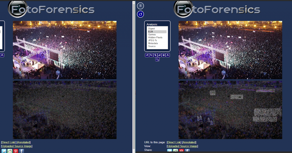 լուսանկարը՝ ավելացնելով մարդկանց, պաստառներ և այլն։ Այս դեպքում վերոնշյալ ծրագիրը միանգամից արձանագրեց փոփոխությունները և բացահայտեց միջամտությունը։ Մենք փորձեցինք նաև