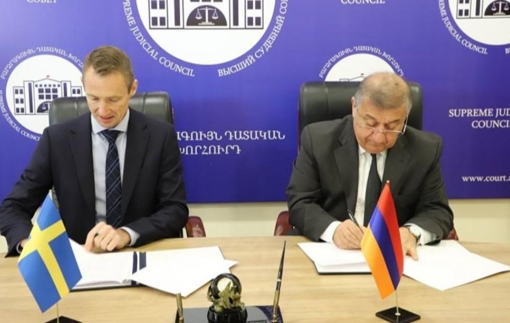 Այսօր՝ սեպտեմբերի 28-ին, ՀՀ Բարձրագույն դատական խորհրդի նախագահի պաշտոնակատար Գագիկ Ջհանգիրյանը և Շվեդիայի ազգային դատարանների վարչության միջազգային կապերի բաժնի ղեկավար, Ստոկհոլմի Վերաքննիչ դատարանի դատավոր Յոնաս Հոգստրոմը հանդիսավոր պայմաններում ստորագրեցին համագործակցության հուշագիր: Այս մասին տեղեկացնում է ԲԴԽ-ն։