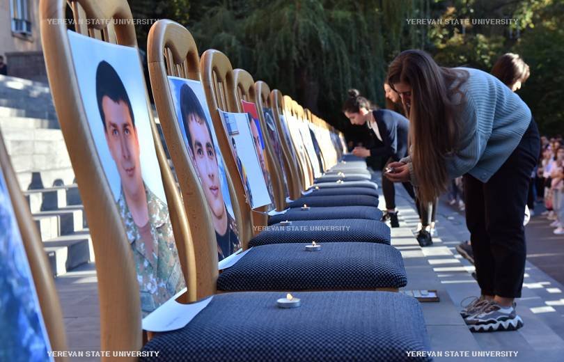 Երեւանի պետական համալսարանի բակում իրականացվել է մոմավառություն՝ ի հիշատակ պատերազմում զոհված համալսարանականների