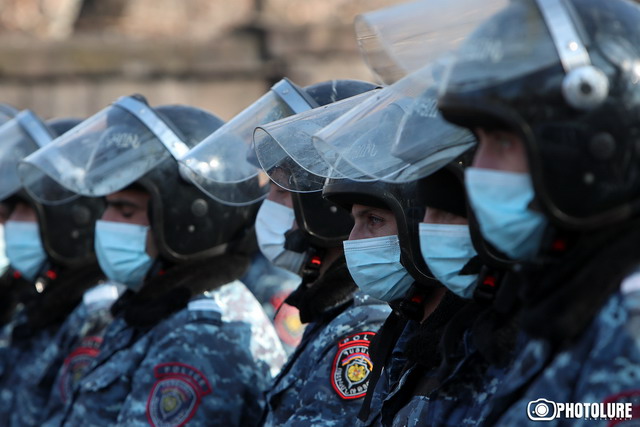 Նրանք կանգնած են վահաններով, պատ են կազմել ԱԺ մուտքի դիմաց:
