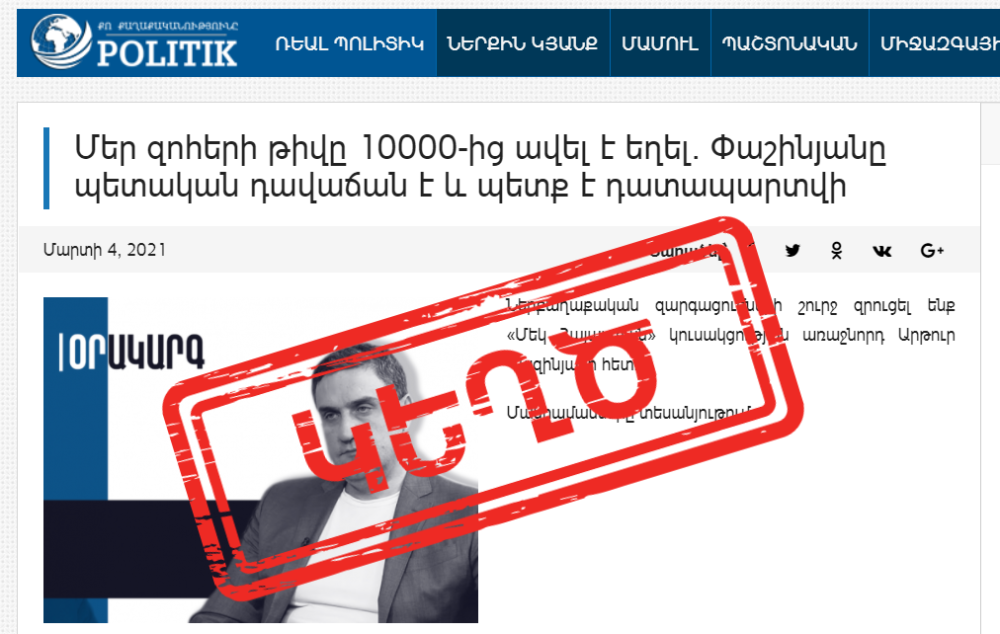 «Տեղեկատվության ստուգման կենտրոնը» հայտնում է, որ դեռևս հունվար ամսին փոխվարչապետ Տիգրան Ավինյանը որոշակի թվեր է հայտնել պատերազմի ընթացքում հայկական կողմի զոհերի վերաբերյալ, նշելով, որ զոհերի թիվը չի գերազանցի 4 հազարը։