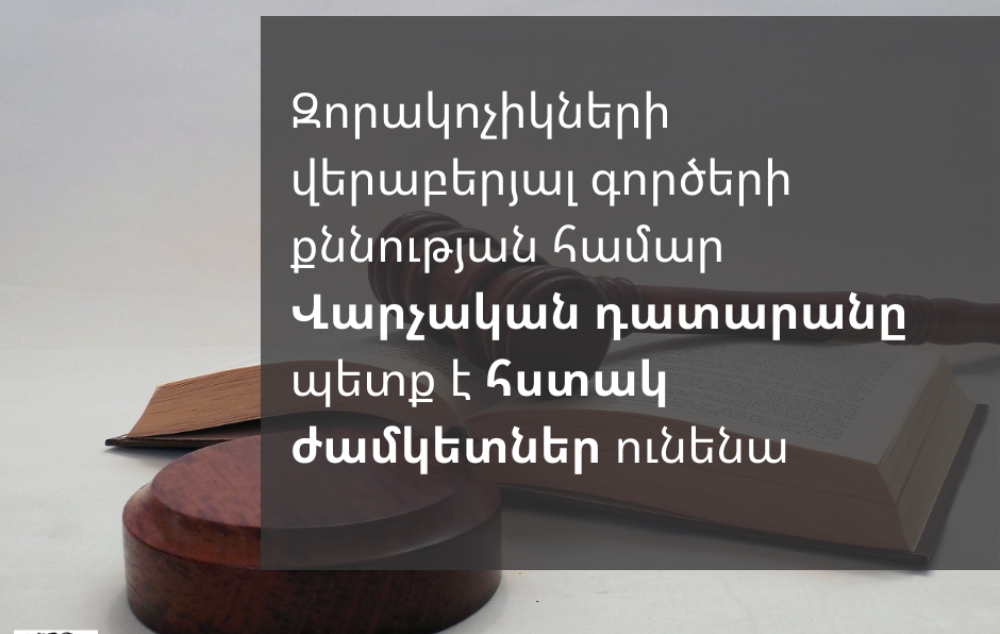 Նշենք, որ գործերի դատական քննության ժամկետների խնդիր կա նաև վաղաժամ զորացրված զինծառայողների առողջությանը պատճառված վնասի փոխհատուցման գործերով։